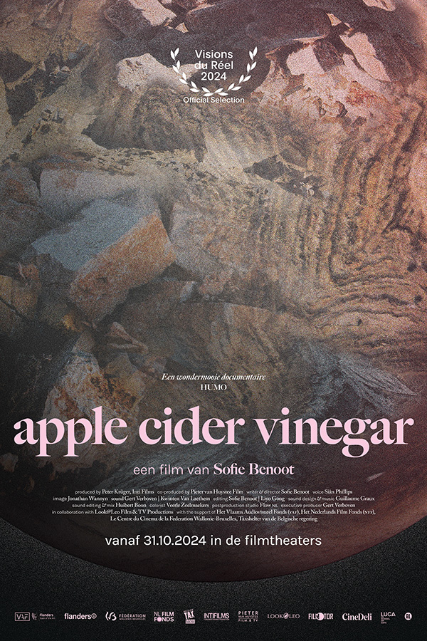 - Stenen vormen zowel een van de meest fundamentele als veronachtzaamde bouwelementen van onze wereld. Wanneer een fictieve vertelster van natuurdocumentaires, vertolkt door Siân Phillips, haar niersteen begint te onderzoeken, besluit ze nog één laatste verhaal te vertellen over deze vergeten wereld van steen. Apple Cider Vinegar is een hypnotiserende essayfilm die niet alleen urgente ecologische kwesties aansnijdt, maar ons ook meeneemt op een fascinerende reis. We ontmoeten Palestijnse steenhouwers, gepassioneerde Britse geologen en de bewoners van een lavalandschap op Fogo, die allen hun eigen unieke relatie met steen onthullen.